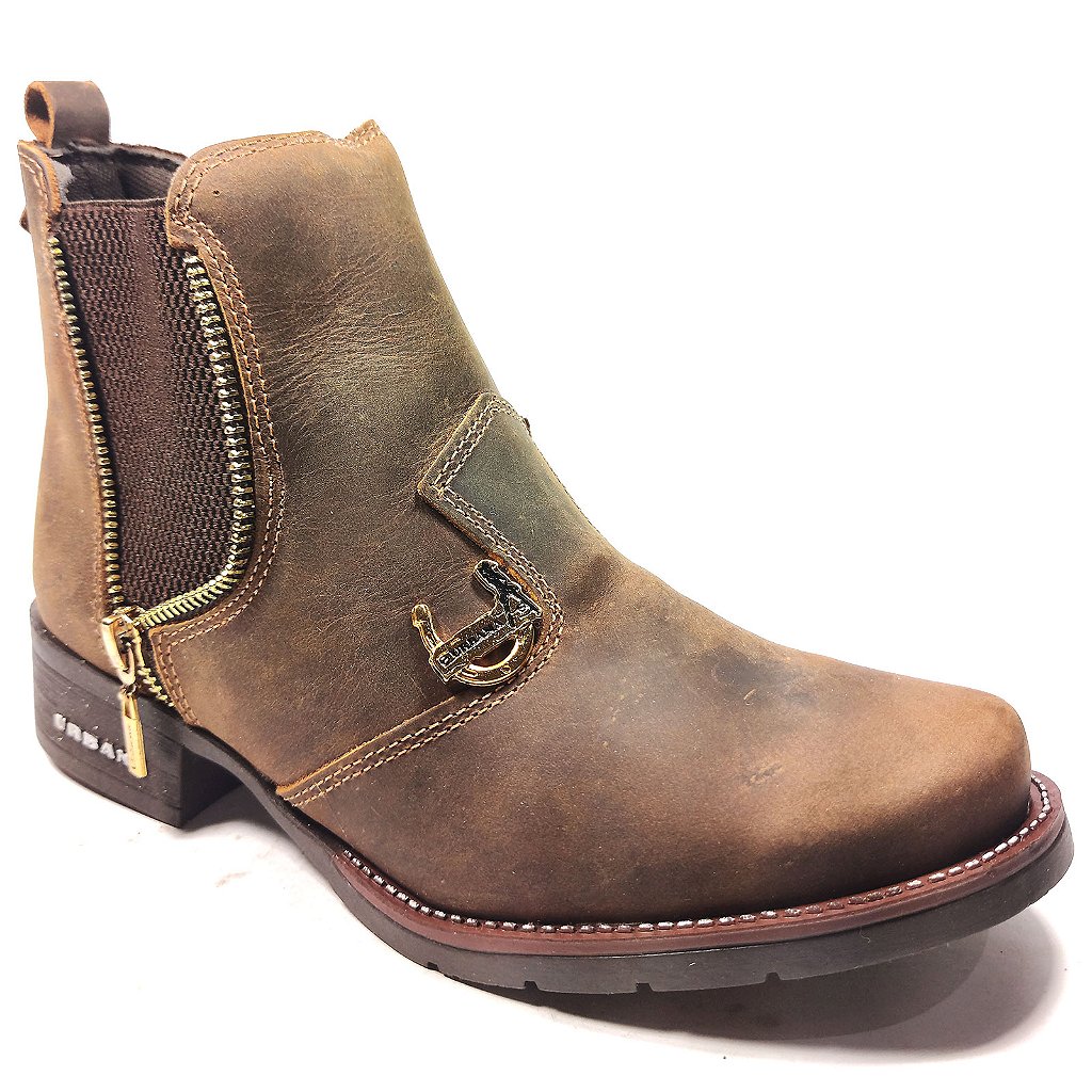 Botina Detalhe em Zíper Couro 806 - crazy horse tabaco