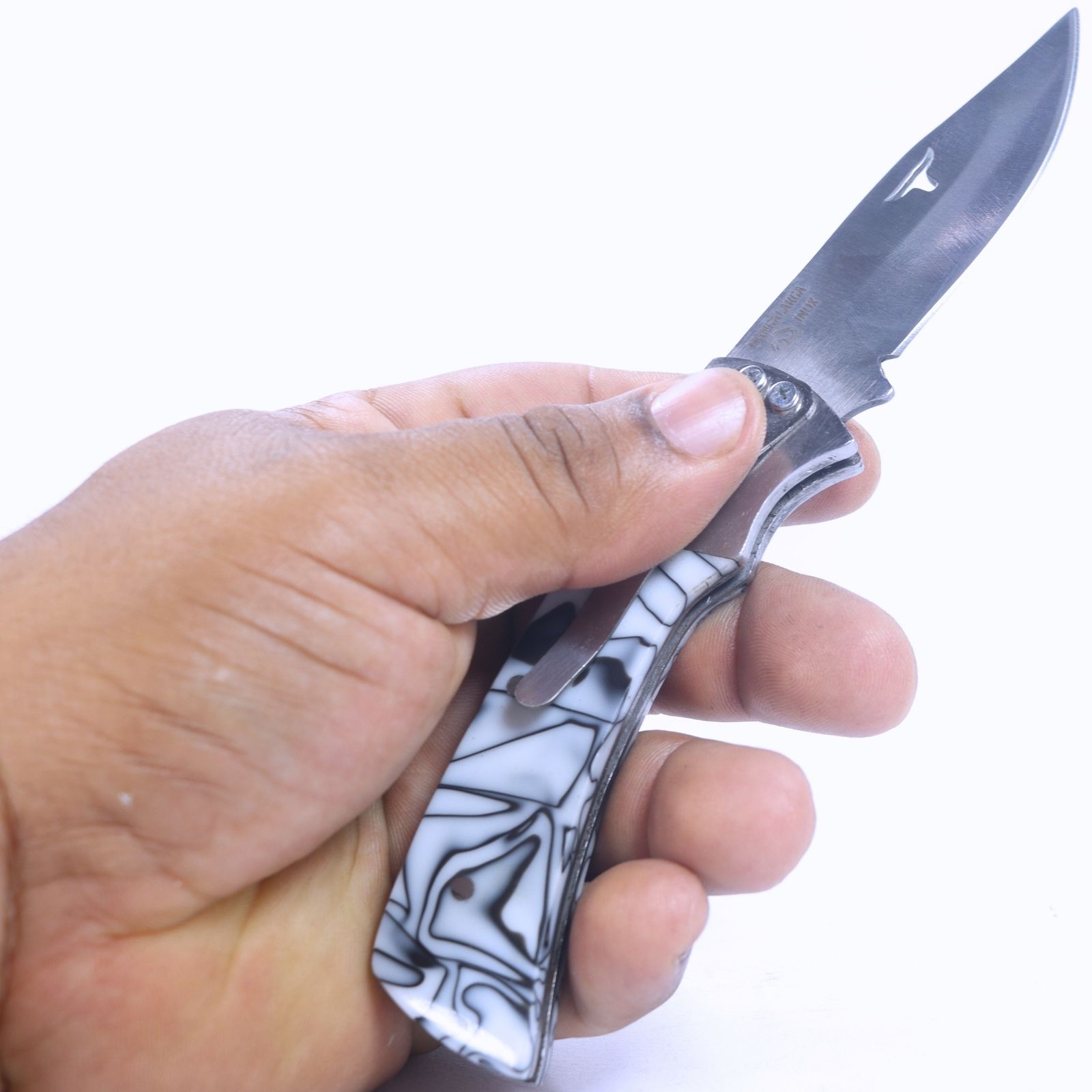 Canivete Inox Cabo de Resina Mangalarga - Branco