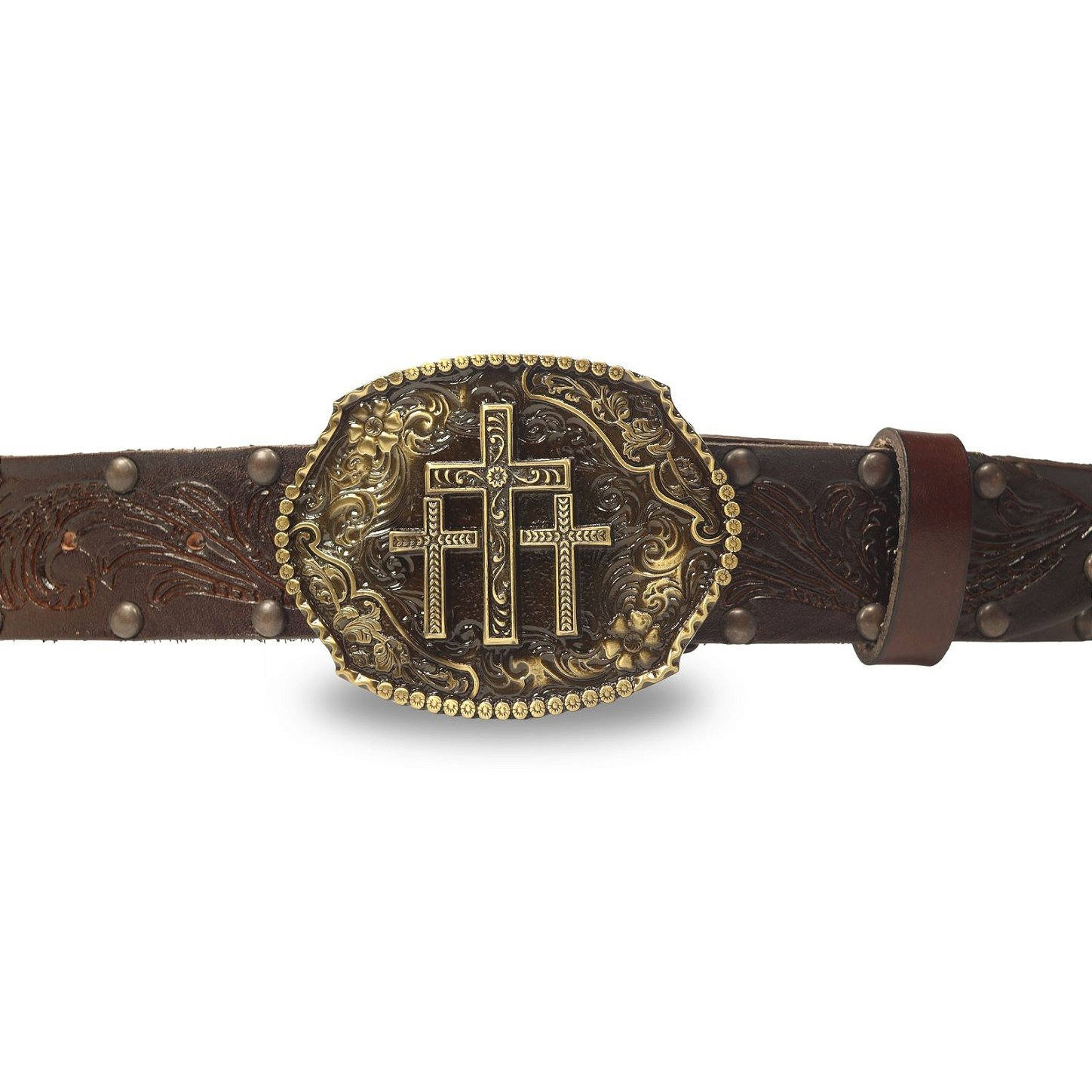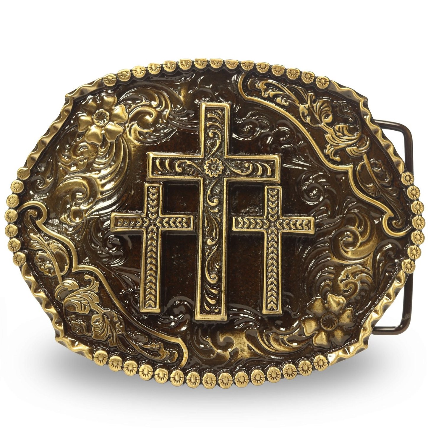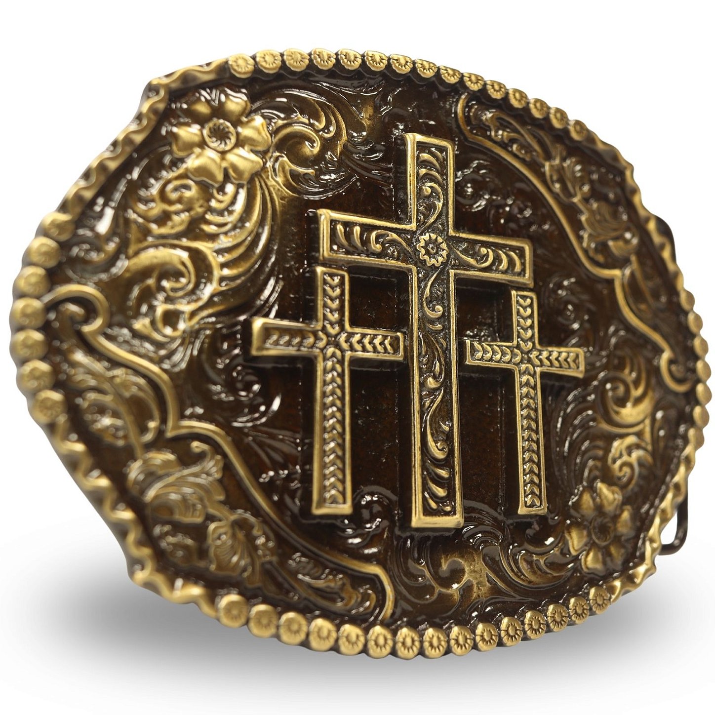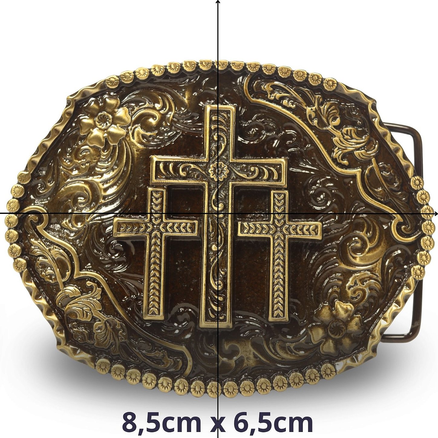 Fivela Country Cruz Tripla 044 7x5 - Ouro Velho