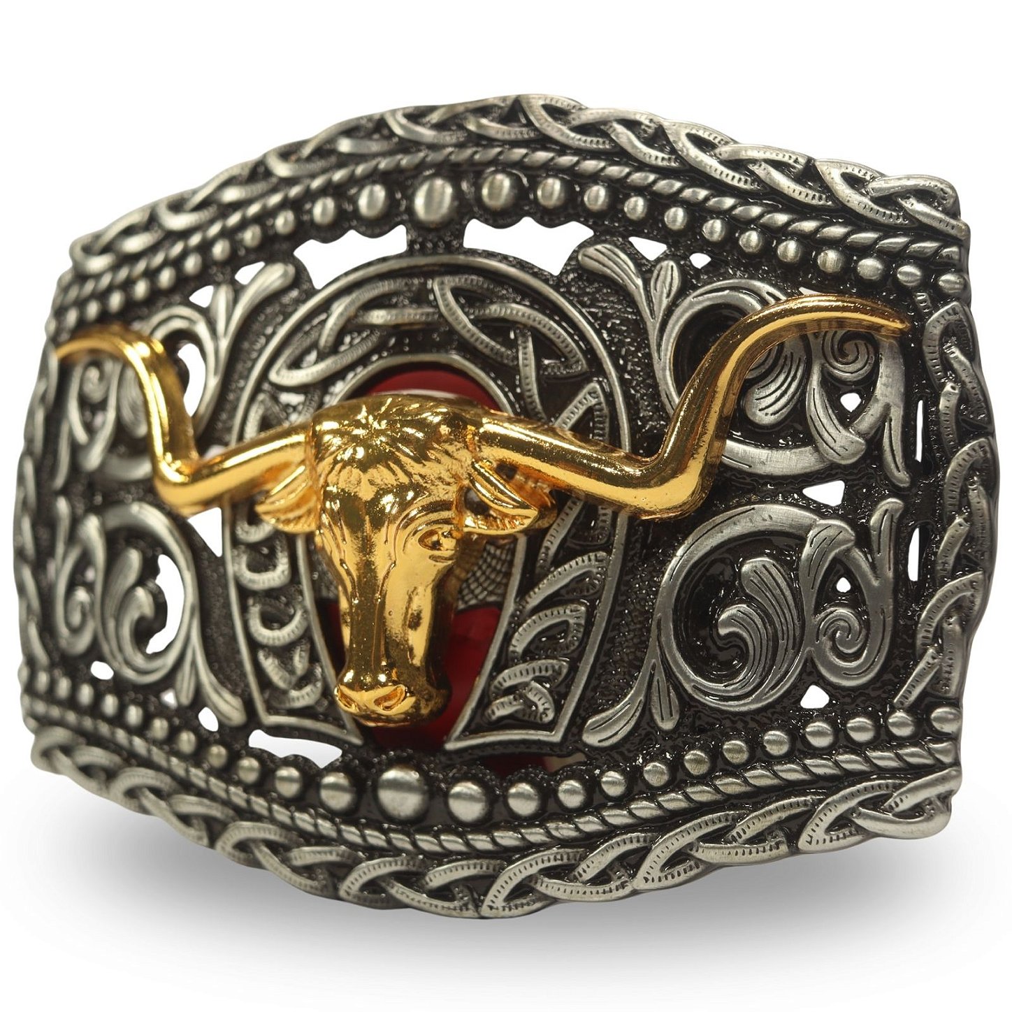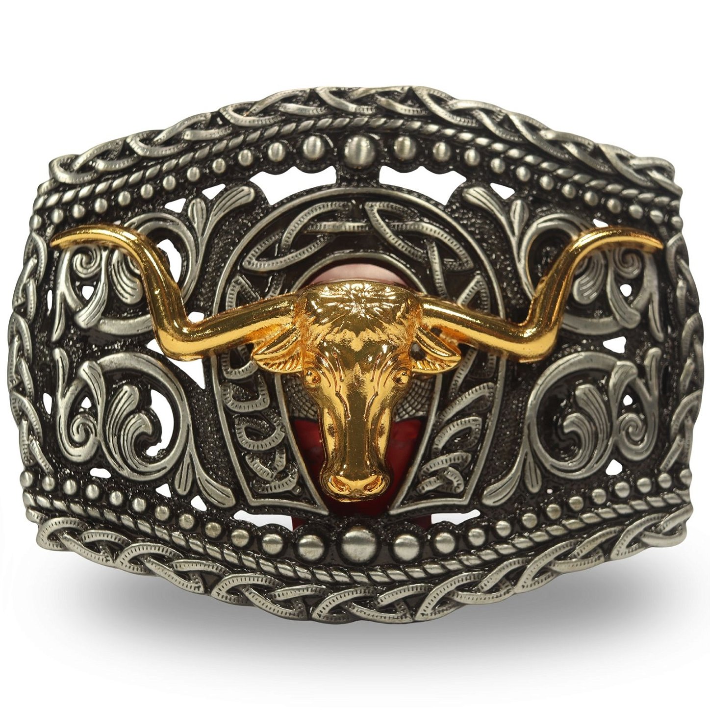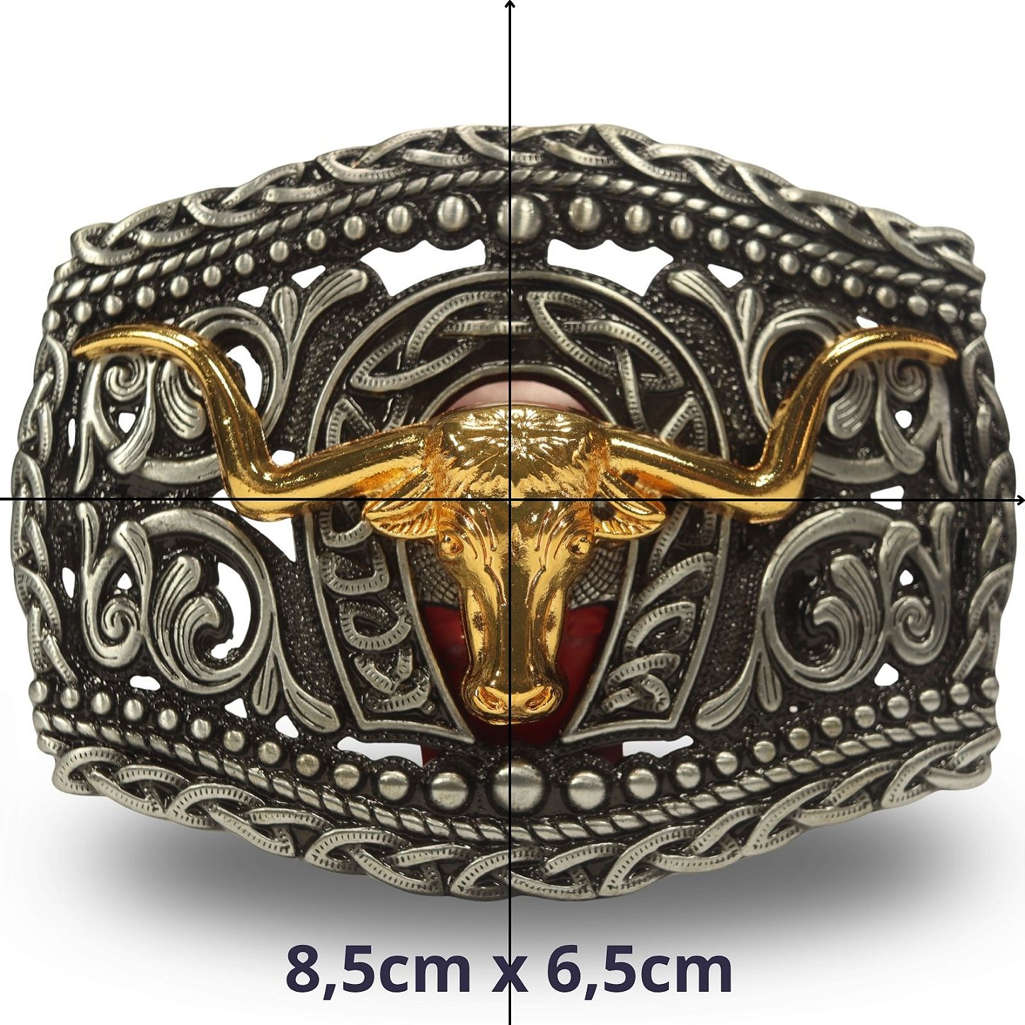 Fivela Country Long Horn Ferradura 045 8x6 - Prata Preto