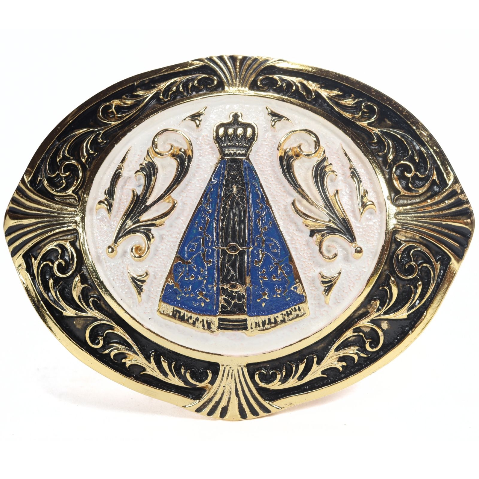 Fivela Country Nossa Senhora 012 - Ouro Velho Branco