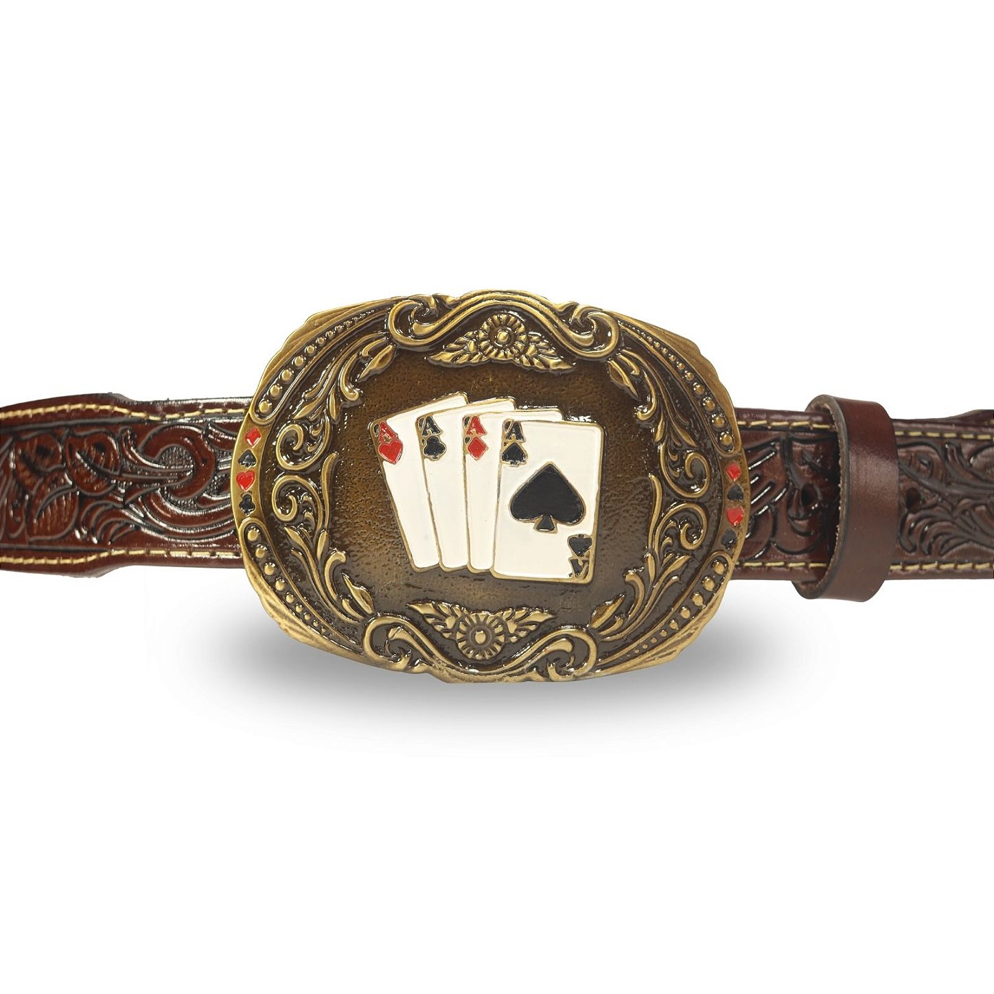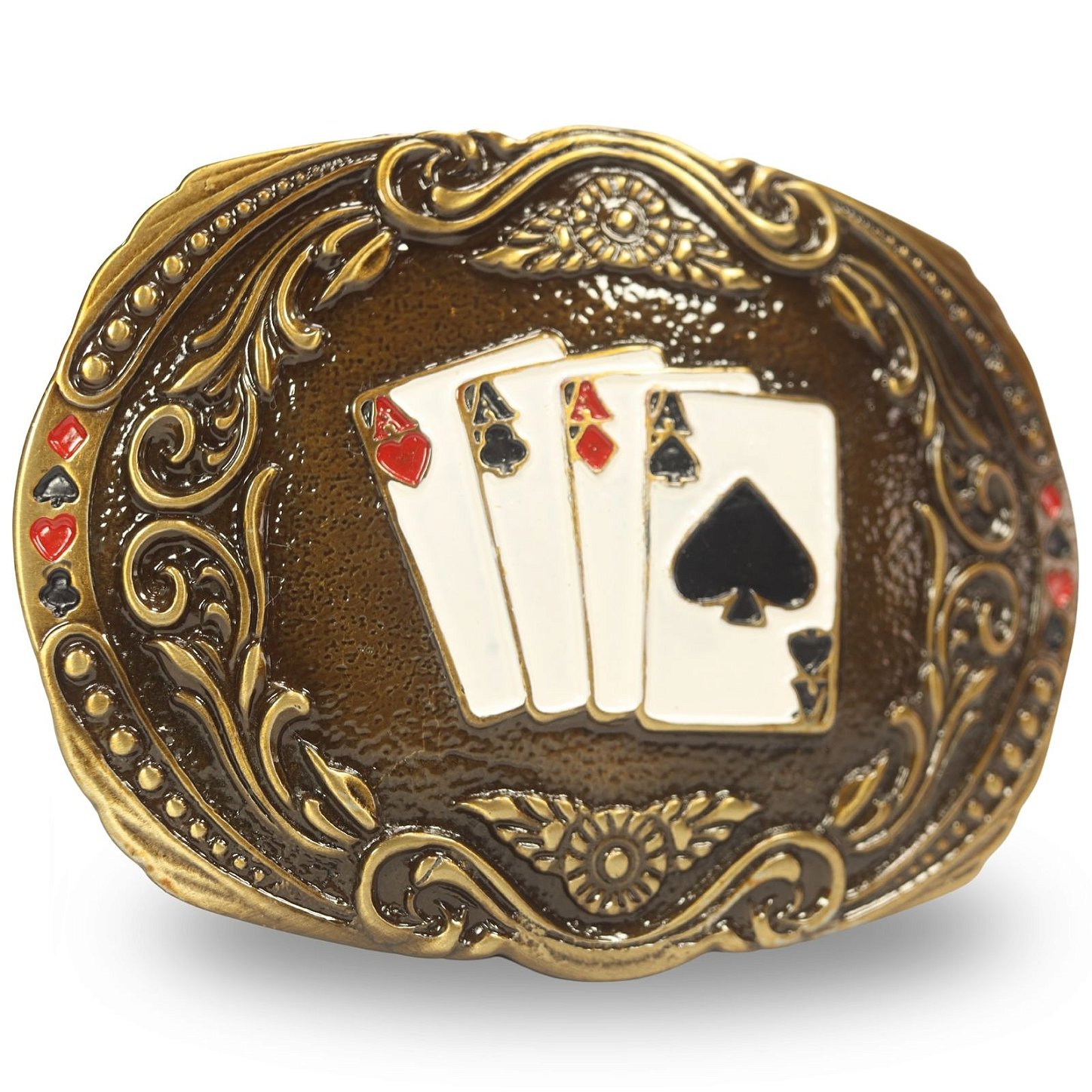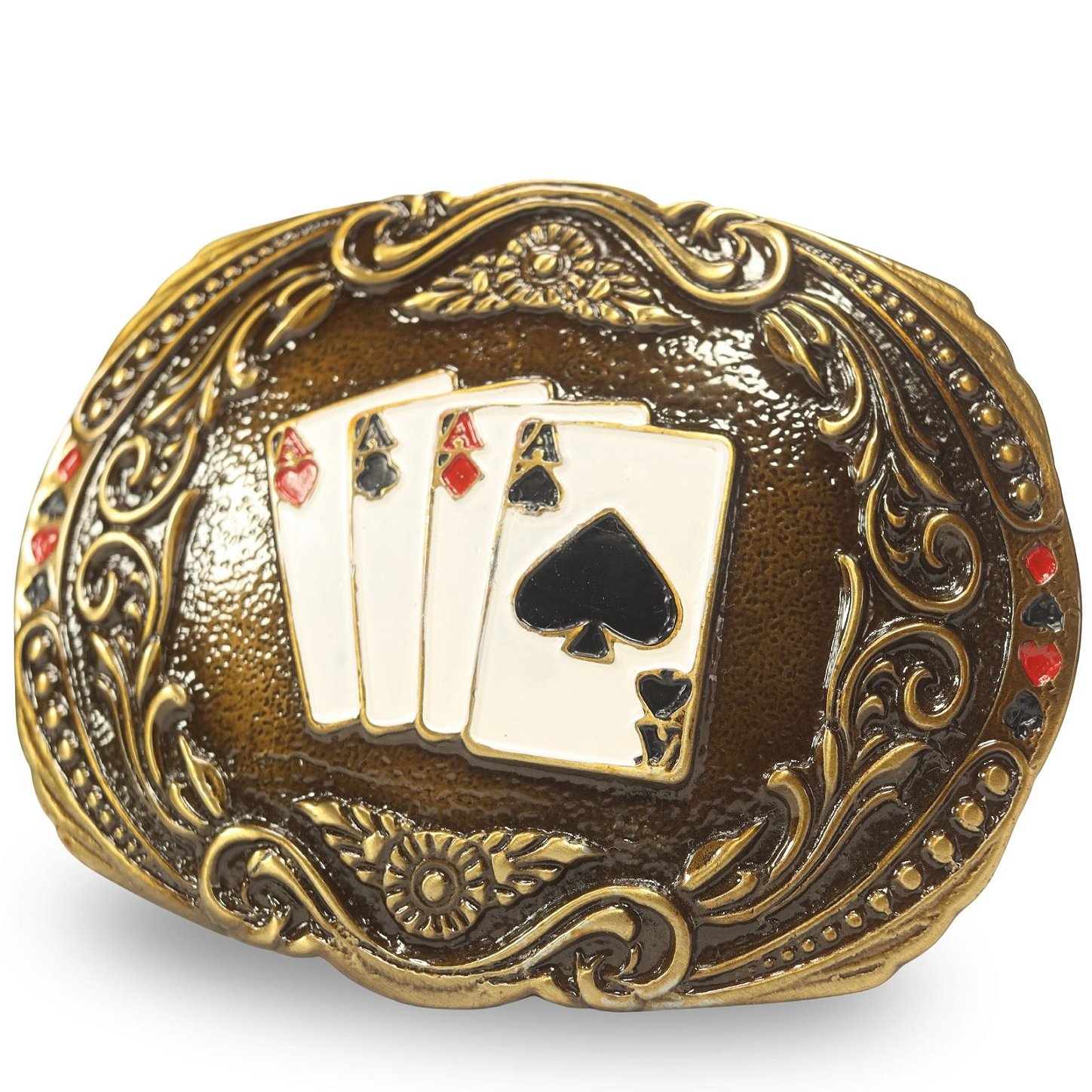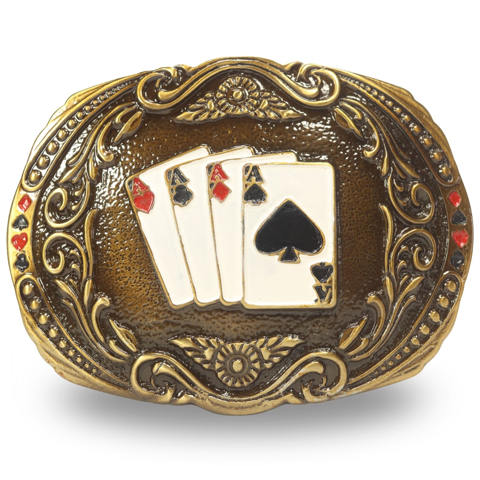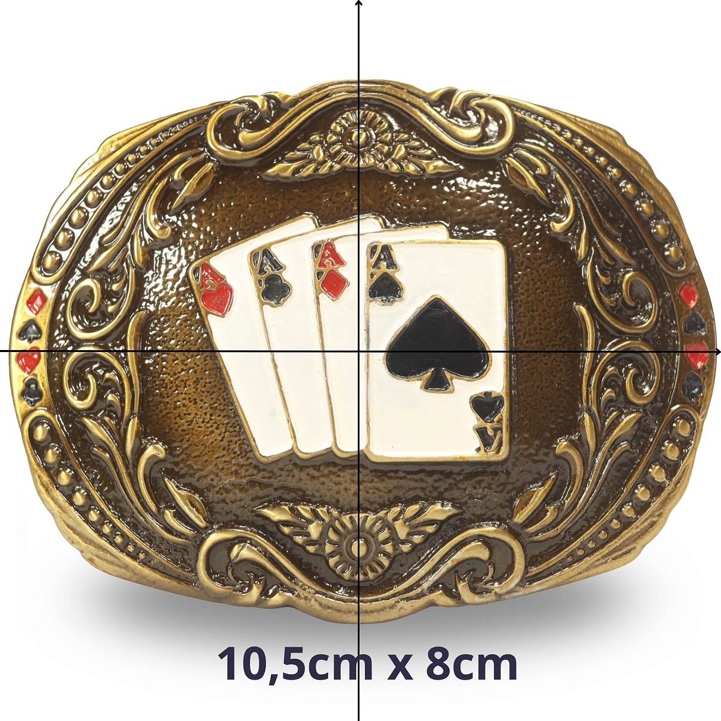 Fivela Country Quadra de Às 042 10x8 - Ouro Velho