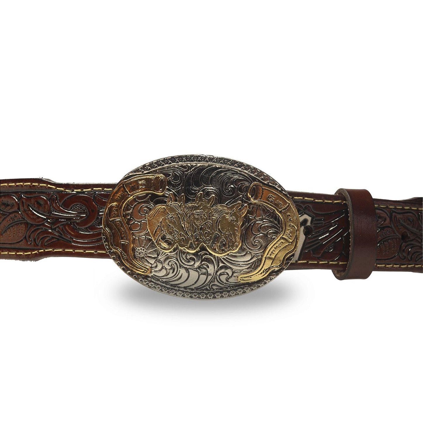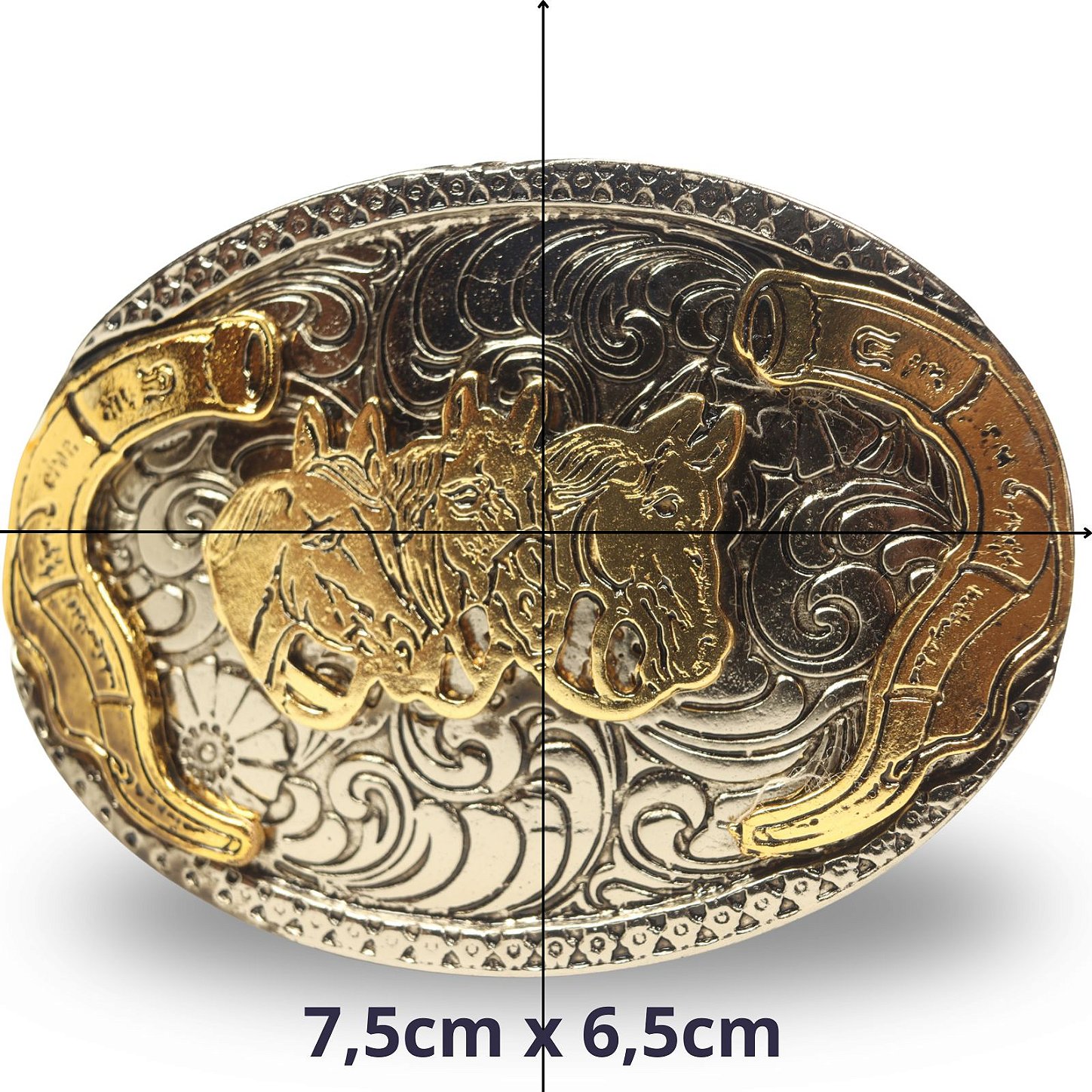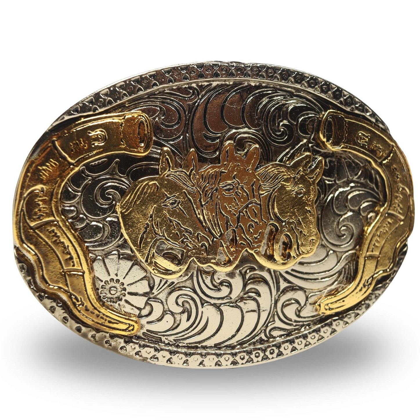Fivela Country Três Cavalos 051 7x6 - Prata Dourado